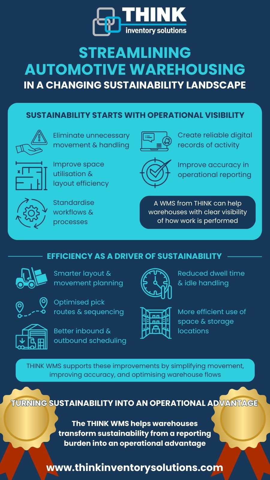 With many years experience supporting automotive suppliers, THINK has seen a clear shift and sustainability is no longer just a regulatory topic, it’s an operational one. Warehousing performance, process design, and data visibility now play a central role in how organisations respond to environmental expectations.